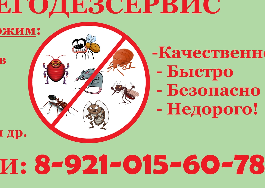 Мы занимаемся дезинсекцией, дезинфекцией и дератизацией, качественно,быстро,безопасно с гарантией!